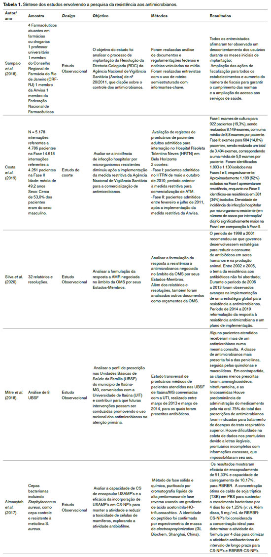 RESULTADOS: Inicialmente foram identificados 121 estudos que investigaram a associação da resistência bacteriana devido ao uso indiscriminado de antimicrobianos. Contudo, após aplicação dos critérios de inclusão e exclusão, apenas cinco fizeram parte do escopo desta revisão.