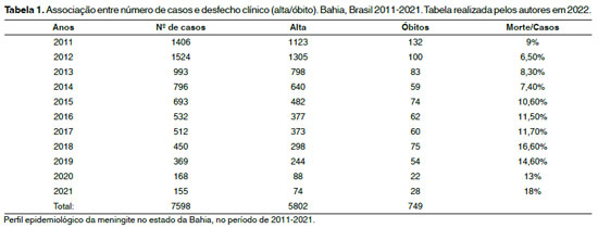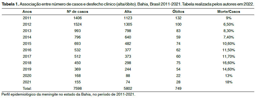 Epidemiological profile of meningitis in The State of Bahia, in the period of 2011-2021