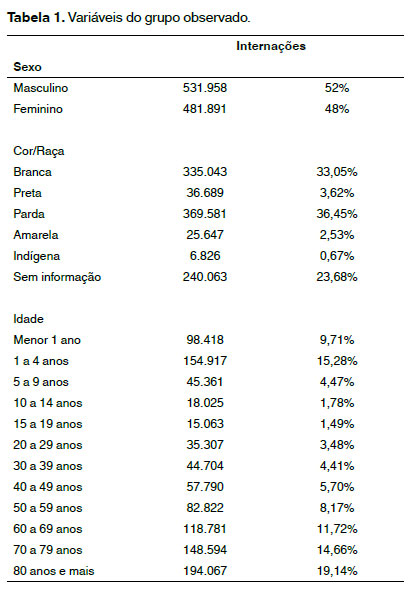 As principais variáveis do estudo foram o número de internações mensais por pneumonia, sexo, idade e cor/raça.